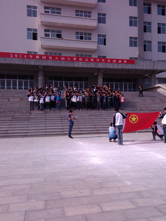 2014年“五四”前夕,院團(tuán)委在教學(xué)樓前隆重舉行了新團(tuán)員入團(tuán)宣誓儀式,共有58名新團(tuán)員光榮加入中國(guó)共青團(tuán)。儀式中,老團(tuán)員為新團(tuán)員佩戴團(tuán)徽,頒發(fā)團(tuán)員證、團(tuán)章,并在辛祎老師的帶領(lǐng)下莊嚴(yán)宣誓。儀式結(jié)束后院學(xué)生社團(tuán)為新、老團(tuán)員表演了精彩的節(jié)目。最后團(tuán)委書記李峰老師對(duì)新團(tuán)員表示了祝賀,要求新團(tuán)員要學(xué)習(xí)團(tuán)章,了解團(tuán)史,堅(jiān)定擁護(hù)中國(guó)共產(chǎn)黨的領(lǐng)導(dǎo),認(rèn)真學(xué)習(xí)和踐行社會(huì)主義核心價(jià)值觀,深刻理解中國(guó)夢(mèng)的精神內(nèi)涵,堅(jiān)定走中國(guó)特色社會(huì)主義道路的理想信念。