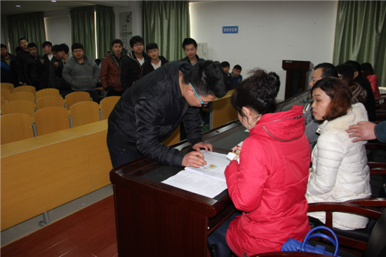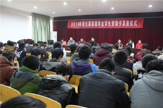 為認(rèn)真落實(shí)市人社局關(guān)于國家助學(xué)金資助發(fā)放規(guī)定,2016年1月4日下午,學(xué)生處在教學(xué)樓三樓多媒體會(huì)議室舉行“2015年新生國家助學(xué)金資助卡發(fā)放儀式”。 會(huì)上,首先組織學(xué)生學(xué)習(xí)了《渭南技師學(xué)院國家助學(xué)金評(píng)審發(fā)放實(shí)施細(xì)則》,隨后全體學(xué)生逐一簽名,領(lǐng)取資助卡,發(fā)放過程全程錄像,使我院國家助學(xué)金發(fā)放公開透明規(guī)范。