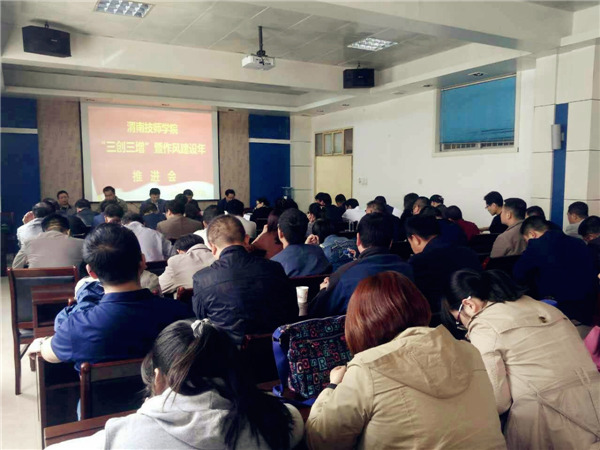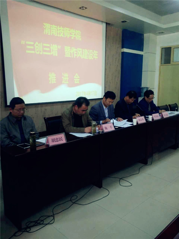 ---我院召開“三創(chuàng)三增”暨作風(fēng)建設(shè)年推進會 4月17日,院黨委在睿智軒召開“三創(chuàng)三增”暨作風(fēng)建設(shè)年推進會, 全體黨員及副科以上干部參加,會議由院黨委副書記李冬旺主持,院長曲志勇作動員講話。 會上,楊平副院長宣讀《中共渭南技師學(xué)院委員會關(guān)于在全院開展作風(fēng)建設(shè)年主題活動的實施意見的通知》和《中共渭南技師學(xué)院委員會關(guān)于印發(fā)作風(fēng)建設(shè)年活動工作機構(gòu)設(shè)置及有關(guān)工作的通知》文件,李冬旺副書記宣讀《中共渭南技師學(xué)院委員會關(guān)于深化“兩學(xué)一做”學(xué)習(xí)教育開展“三創(chuàng)三增”主題黨建活動實施方案的通知》文件。 通過“三創(chuàng)三增”主題黨建活動,構(gòu)建“兩學(xué)一做”常態(tài)化、制度化新載體,不斷強化基層黨組織的政治引導(dǎo)功能和戰(zhàn)斗堡壘作用。三創(chuàng)三增即創(chuàng)新增活力、創(chuàng)優(yōu)增魅力、創(chuàng)業(yè)增實力。 通過“五查四整三提升”活動,持續(xù)深化教職工作風(fēng)建設(shè)。五查即查認(rèn)識、查效能、查狀態(tài)、查擔(dān)當(dāng)、查紀(jì)律,四整即開展“四風(fēng)”隱形變異問題專項整治、開展庸政懶政怠政專項整治、開展吃拿卡要亂收費問題專項整治、開展嚴(yán)厲打擊組織煽動群眾堵門斷路停水停電等阻撓干擾正常教學(xué)秩序問題專項整治,三提升即提升理念、提升激情、提升效率。 會上指出,黨員干部是推動學(xué)院科學(xué)發(fā)展的骨干力量,其作風(fēng)直接關(guān)系到學(xué)院的興衰和成敗。作風(fēng)建設(shè)只有起點,沒有終點,作風(fēng)建設(shè)永遠(yuǎn)在路上。此次作風(fēng)建設(shè)主題活動重點要解決黨員干部、教職工工作中存在的精神不振、政令不通、紀(jì)律不嚴(yán)、工作不實、創(chuàng)新不夠、正氣不足的問題。 會議要求,全體同志要克服作風(fēng)漂浮、形式主義的作風(fēng)頑癥,把工作放在心上,用心干事,干出成績。要強化黨員干部的教育、管理和監(jiān)督,起到示范標(biāo)桿作用。要把作風(fēng)建設(shè)的成果體現(xiàn)在教書育人、服務(wù)育人、管理育人中,以務(wù)實的作風(fēng)和嚴(yán)謹(jǐn)?shù)墓ぷ魍七M學(xué)院又好又快發(fā)展。