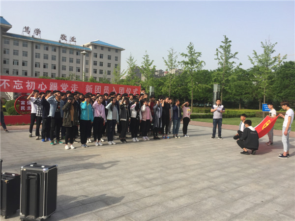 2、舉辦新團員入團儀式 2017年5月4日下午,“不忘初心跟黨走 新團員入團儀式”在教學樓前廣場隆重舉行。 入團儀式在《國歌》聲中拉開序幕,儀式由魏雪楠老師主持。辛祎老師宣讀了院團委關(guān)于接收新團員的批復。60名新團員在鮮艷的團旗下,以宏亮的聲音,面對鮮艷的團旗,進行了莊嚴的宣誓。班歡老師依照《團章》宣讀了團員的權(quán)利和義務,然后團干部為新團員們頒發(fā)團章、團員證書和團徽,從那一刻起他們正式成為了光榮的中國共產(chǎn)主義青年團團員! 院團委書記李峰老師向新加入團組織的團員表示祝賀,他要求全體團員青年要堅定共產(chǎn)主義遠大理想和中國特色社會主義共同理想,增強團員意識,強化組織意識和組織紀律,聽黨話、跟黨走,奮發(fā)學習,爭做新時代的先鋒。 入團儀式在《團歌》聲中落下帷幕。