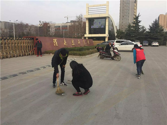 6、開展學習雷鋒精神,團委開展系列志愿服務活動 2017年3月至4月,為營造綠色健康、和諧美麗的校園環(huán)境,院團委組織30余名青年志愿者對校園周邊,教學樓前廣場、校門口廣場進行了撿拾果皮紙屑、清掃垃圾煙頭等保潔工作。我院青年志愿者以實際行動,展現(xiàn)了志愿精神,為建設美麗渭南、和諧校園做出了貢獻。
