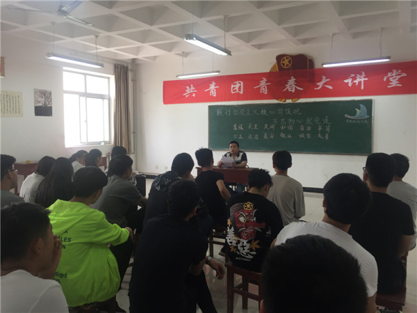2017年共青團青春大講堂開講啦! 5月23日下午16:30,院團委在教學樓四樓團員之家舉辦了“踐行社會主義核心價值觀不忘初心跟黨走”專題學習。院團委委員辛祎、班歡老師帶領全院200余名團干部參加學習。