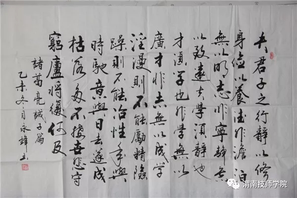 12月25日,基礎(chǔ)教研室舉辦2017“追夢新征程·書畫新精彩”師生書畫手工展。本次活動歷時三天,共展出師生書法、繪畫、手工制作三大類作品180余件。 通過一個月的集中培訓(xùn)、選拔后,本次活動順利舉行。一幅幅筆走龍蛇的書法,一張張栩栩如生的繪畫,一件件巧妙精致的手工作品,吸引來大批師生參觀學(xué)習(xí),贏得院領(lǐng)導(dǎo)和師生好評。