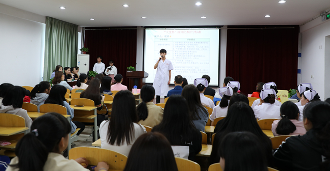 職業(yè)技能考試在教學樓舉行 演講賽慶國際護士節(jié) 5月11日,教務(wù)處基礎(chǔ)教研室舉辦首屆“天使杯”護理專業(yè)學生演講比賽,主題是“追尋南丁格爾•青春奮斗圓夢”,旨在增強學生專業(yè)自豪感,展示專業(yè)建設(shè)成果。本次活動歷時月余,通過初賽、復賽環(huán)節(jié),10名選手脫穎而出。學生們挑戰(zhàn)自我,展現(xiàn)風采,向第107個國際護士節(jié)的獻禮。