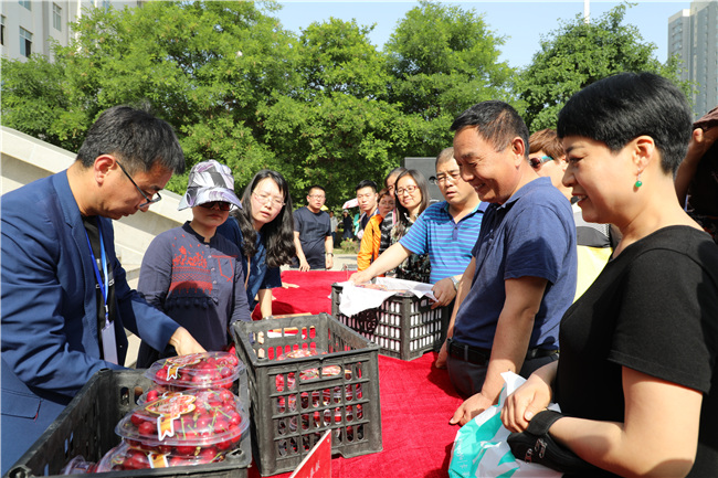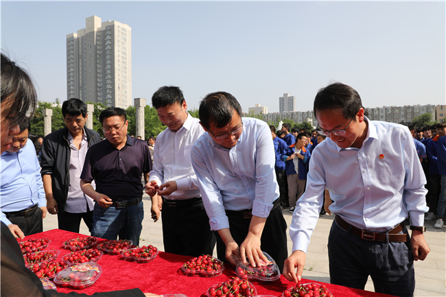 在啟動(dòng)儀式結(jié)束后,與會(huì)領(lǐng)導(dǎo)與我院師生共同品嘗美味的澄城櫻桃并進(jìn)行義購(gòu)。
