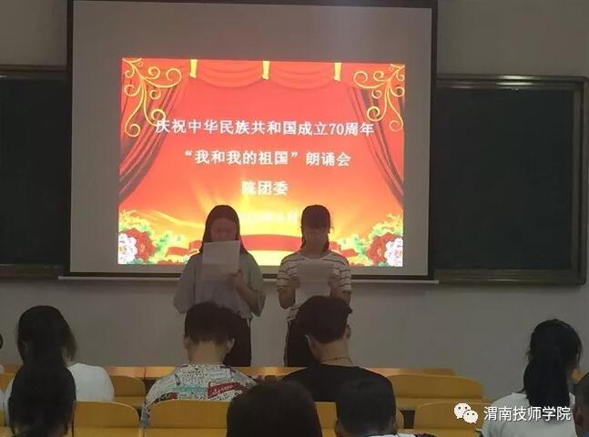 為了隆重慶祝中國共產(chǎn)黨建黨98周年、中華人民共和國成立70周年,謳歌中華民族為實現(xiàn)偉大復(fù)興中國夢的奮斗歷程,引導(dǎo)青年學(xué)生堅定理想信念,不忘初心跟黨走、共筑青春中國夢,院團(tuán)委舉辦了“我和我的祖國”、“青春心向黨、建功新時代”兩場主題朗誦會。全院團(tuán)員青年熱情高漲、積極參與。