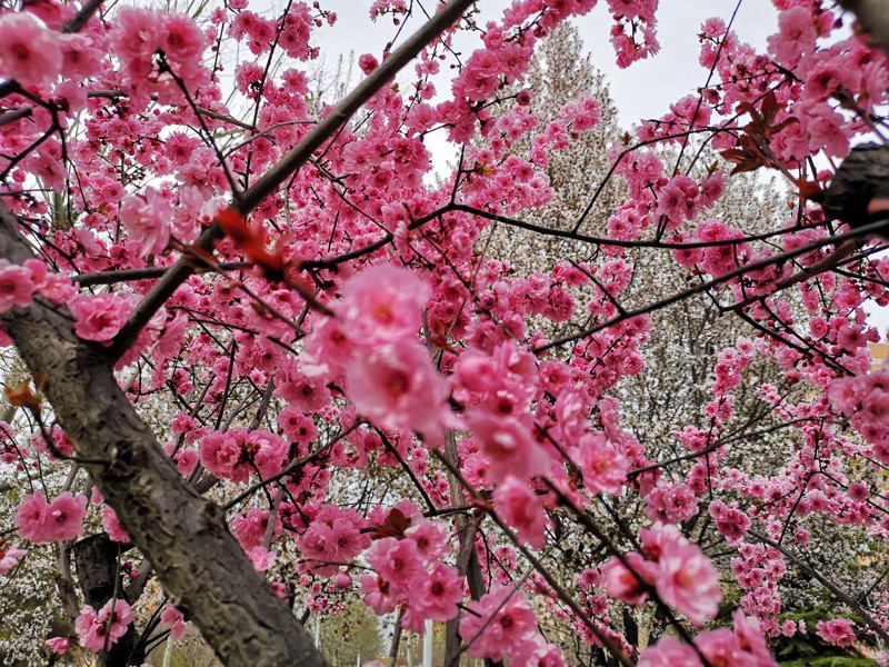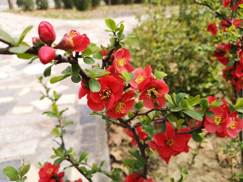 花 怒放枝頭 草 喜長(zhǎng)路旁 樹(shù) 挺拔向上 春天來(lái)了 我們團(tuán)聚的腳步近了