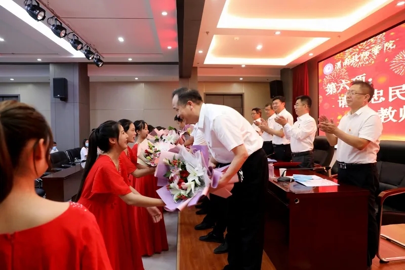 院級(jí)領(lǐng)導(dǎo)、中層干部和教師代表近百人歡聚一堂,共同慶祝這一節(jié)日。此次活動(dòng)的主題是“賡續(xù)百年初心,擔(dān)當(dāng)育人使命”。