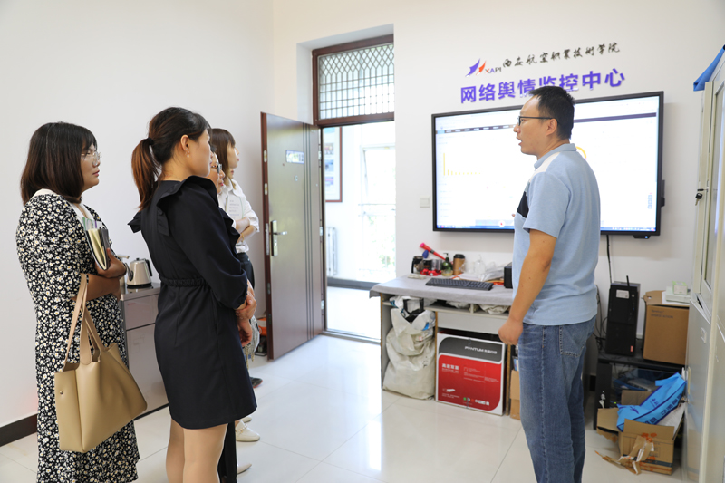 隨后,雙方與會(huì)同志就意識(shí)形態(tài)責(zé)任落實(shí)、校園文化建設(shè)、宣傳平臺(tái)管理等工作進(jìn)行了交流,分享了各自的經(jīng)驗(yàn)做法。在全媒體中心主任馬驥的陪同下參觀了輿情監(jiān)測(cè)中心、航空科技館和航空實(shí)訓(xùn)大樓。在建黨百年之際,感受我國(guó)航空工業(yè)發(fā)展取得的輝煌成就。
