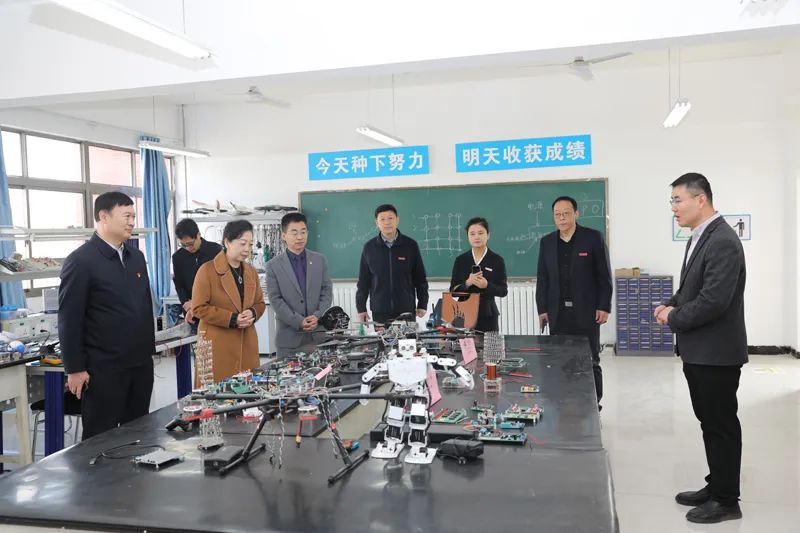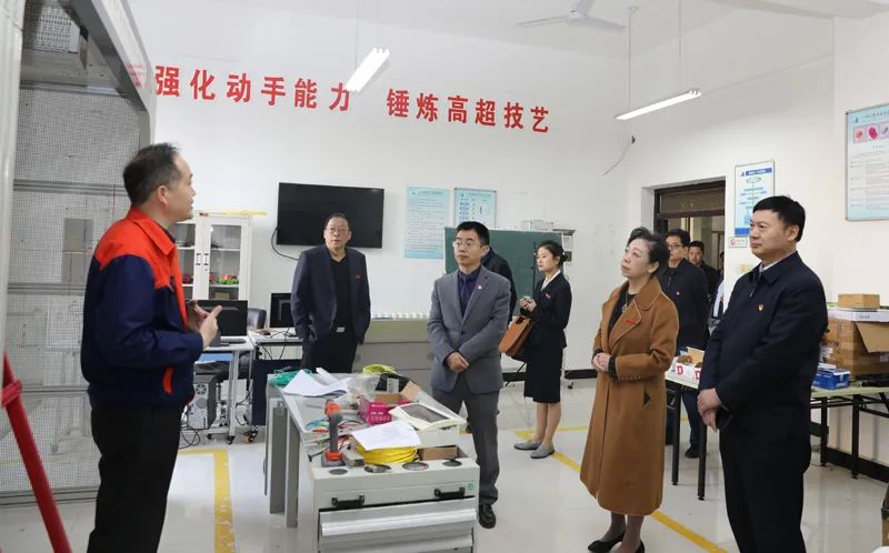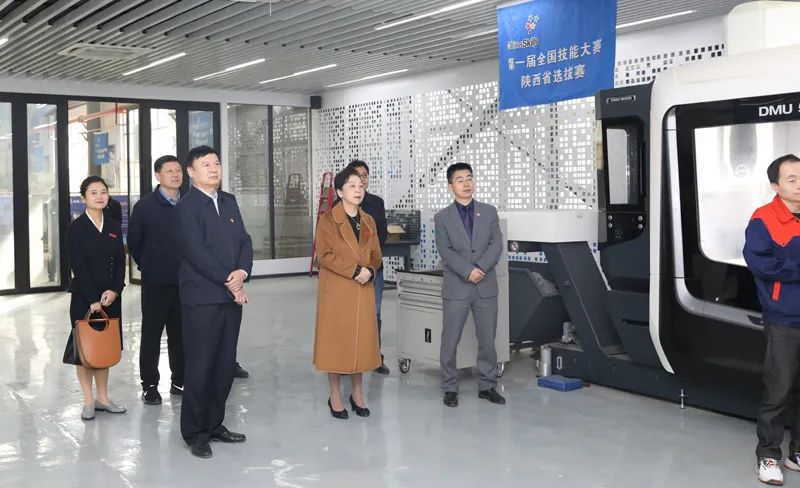 雷亞萍一行先后參觀了汽車實(shí)訓(xùn)基地、京東電商校園實(shí)訓(xùn)中心、機(jī)械加工實(shí)訓(xùn)車間、數(shù)控車(銑)實(shí)訓(xùn)車間、PLM數(shù)字化工廠體驗(yàn)中心、數(shù)控維修實(shí)訓(xùn)車間、三坐標(biāo)精密測量室、五軸五聯(lián)動(dòng)(DMG)高端數(shù)控加工中心、機(jī)電專業(yè)一體化教室、機(jī)器人焊接功能展示、教學(xué)型機(jī)器人功能展示等,實(shí)地考察了學(xué)生技能實(shí)訓(xùn)情況,詳細(xì)了解了相關(guān)設(shè)備的規(guī)模、技能及實(shí)訓(xùn)效果等。