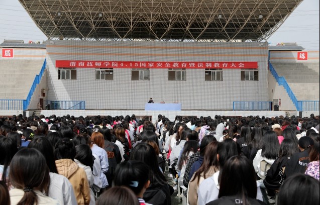 上午10點30分,保衛(wèi)處、學生處聯(lián)合在學院操場組織召開“4.15國家安全教育暨法制教育大會”,全院6000余名師生參加,會議由學生處處長李峰主持。 本次國家安全暨法制教育大會邀請了渭南市公安局法制支隊三級警長王曉燕警官為同學們做報告。會上,李峰處長為王曉燕警官頒發(fā)“校外法制輔導員”聘書。