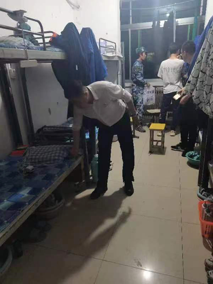 21:00學(xué)工支部黨員及學(xué)生處其他同志,深入五棟公寓進(jìn)行安全排查。