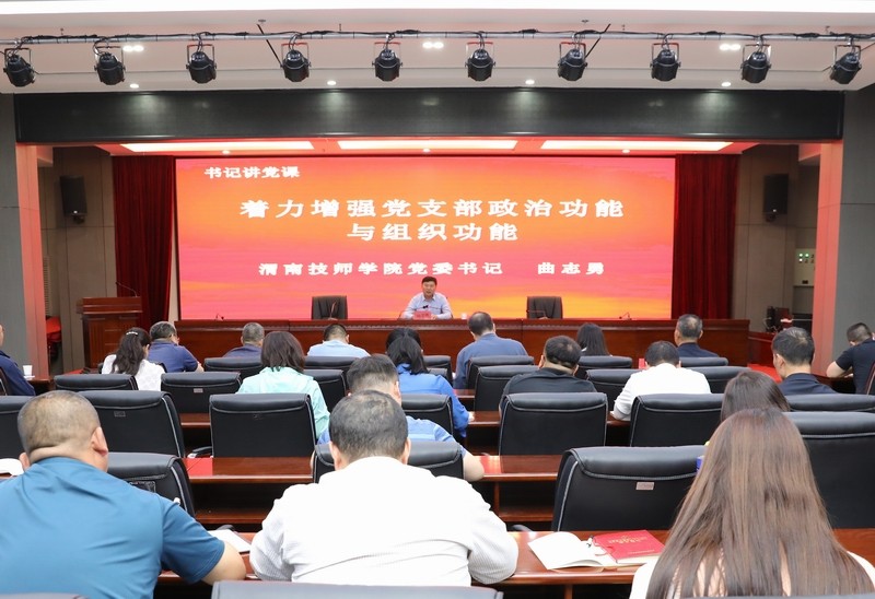2023年5月24日,渭南技師學(xué)院召開黨委書記抓黨建專題講座,黨委書記曲志勇主持并以《著力增強(qiáng)黨支部政治功能和組織功能》為題講授黨課。黨委委員、紀(jì)委書記蔡小倫,組織人事處處長(zhǎng),各黨支部書記,支部委員參加了此次專題講座。