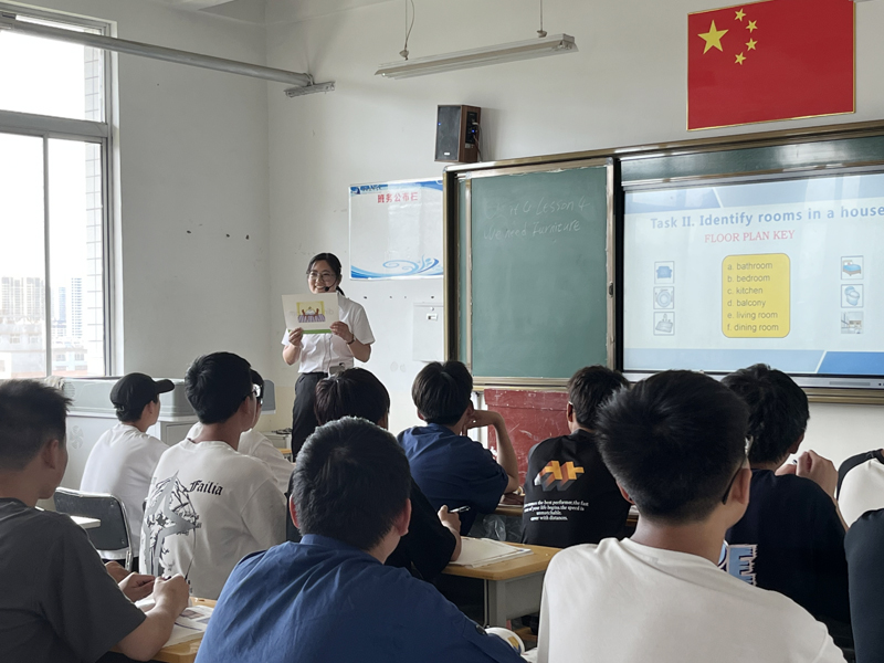 公開課的課題是:Housing:We Need Furniture—《住房:我們需要家具》。課堂上,劉曉老師通過觀看圖片、創(chuàng)設(shè)問題導(dǎo)入新課,激發(fā)學(xué)生學(xué)習(xí)興趣,通過情境展示、對(duì)比和歸類,讓學(xué)生理解、區(qū)分、掌握關(guān)于房子和家具的詞匯,并設(shè)置了Looking for a house、introducing the house and choose the house(尋找房子、介紹房子、選擇房子) 三個(gè)情境,由學(xué)生分別扮演房東、租房者、租賃中介等角色,共同完成角色任務(wù)。在活動(dòng)中學(xué)生掌握了相關(guān)單詞、短語和句型,達(dá)到了訓(xùn)練學(xué)生英語溝通能力的目標(biāo),培養(yǎng)了學(xué)生自信心,體現(xiàn)了“以學(xué)生為中心,以能力為本位”的教學(xué)理念。授課中,劉老師融入思政元素,結(jié)合課題引導(dǎo)學(xué)生熱愛生活、誠信友善,努力學(xué)習(xí),掌握專業(yè)技能,用雙手創(chuàng)造美好未來。