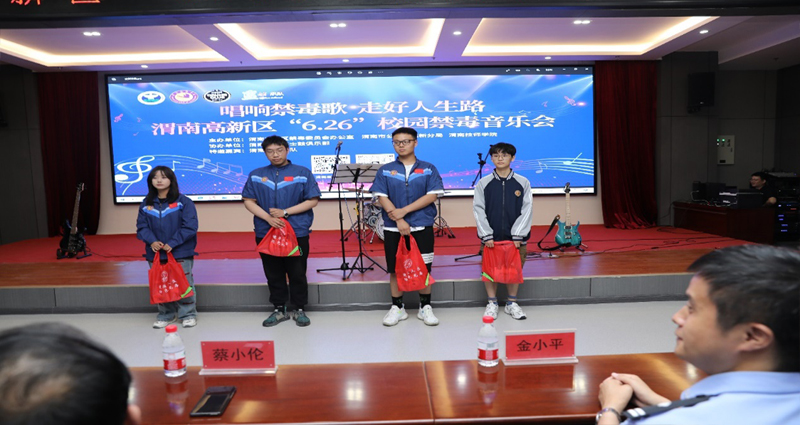 6月26日,學(xué)院與渭南高新區(qū)禁毒委員會(huì)辦公室、渭南市公安局高新分局聯(lián)合舉辦渭南高新區(qū)“6.26”校園禁毒音樂會(huì)。 學(xué)院黨委委員、紀(jì)委書記蔡小倫,公安高新分局黨委委員、副局長 、禁毒辦主任王偉峰,公安高新分局刑偵大隊(duì)副隊(duì)長 、禁毒辦副主任金小平等領(lǐng)導(dǎo)及100余名學(xué)生代表參加。音樂會(huì)邀請渭南藍(lán)嶼樂隊(duì)與大家一起“唱響禁毒歌、 走好人生路”。