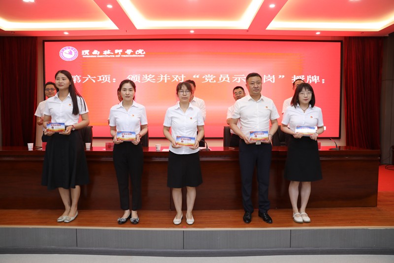 會(huì)上,黨委書記曲志勇帶領(lǐng)學(xué)院全體黨員集體重溫入黨誓詞,并學(xué)習(xí)了習(xí)近平總書記重要講話《健全全面從嚴(yán)治黨體系 推動(dòng)新時(shí)代黨的建設(shè)新的偉大工程向縱深發(fā)展》。黨委副書記、院長張君升宣讀了《中共渭南技師學(xué)院委員會(huì)關(guān)于表彰先進(jìn)黨支部、優(yōu)秀黨務(wù)工作者和優(yōu)秀共產(chǎn)黨員的決定》。黨委委員、紀(jì)委書記蔡小倫宣讀了《中共渭南技師學(xué)院委員會(huì)關(guān)于授予陳瑤瑤等18名同志“黨員示范崗”稱號(hào)的決定》。隨后,院領(lǐng)導(dǎo)向受表彰的黨支部及個(gè)人頒獎(jiǎng),并為“黨員示范崗”授牌。