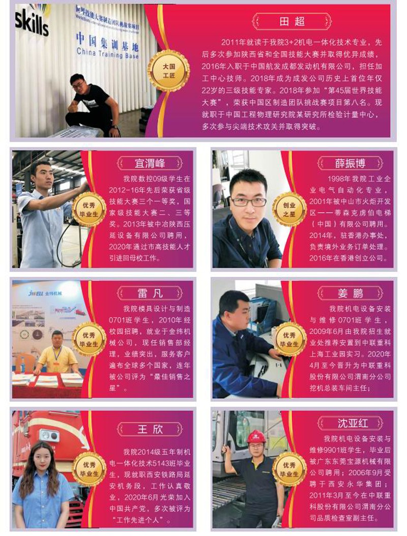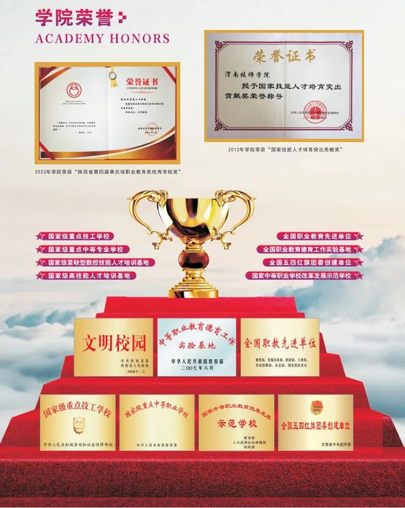 公辦院校正規(guī)可靠,多項(xiàng)榮譽(yù)彰顯學(xué)院硬實(shí)力。學(xué)院伴隨著國家改革開放應(yīng)運(yùn)而生,有著40余年辦學(xué)歷史,是經(jīng)陜西省人民政府批準(zhǔn)成立,隸屬渭南市人民政府的國家級(jí)重點(diǎn)職業(yè)院校。學(xué)院現(xiàn)有全日制在校學(xué)生6500余人,教職員工450余人。先后被評(píng)為國家級(jí)重點(diǎn)技工學(xué)校、國家級(jí)重點(diǎn)中等職業(yè)學(xué)校、全國職業(yè)教育先進(jìn)單位、陜西省第四屆黃炎培職業(yè)教育“優(yōu)秀學(xué)校獎(jiǎng)”、國家級(jí)緊缺型數(shù)控技能人才培訓(xùn)基地、國家級(jí)高技能人才培訓(xùn)基地、全國職業(yè)教育德育工作實(shí)驗(yàn)基地、全國五四紅旗團(tuán)委創(chuàng)建單位、國家中等職業(yè)學(xué)院改革發(fā)展示范學(xué)院、省級(jí)文明校園、省級(jí)平安校園等。