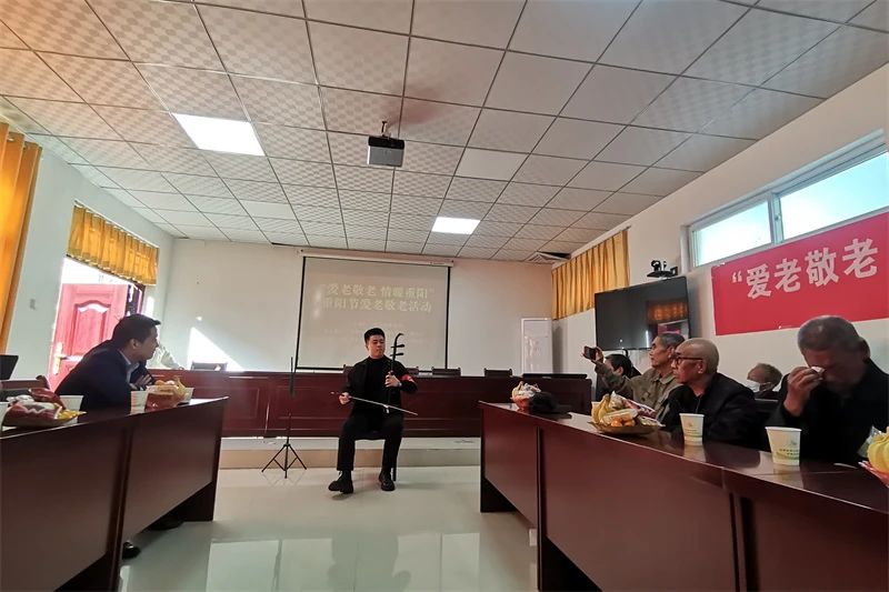 活動在新二路社區(qū)會議室舉行,崇業(yè)路街道辦事處武裝部部長劉磊為本次活動致辭,并向現(xiàn)場所有的老人致以節(jié)日的祝福。活動現(xiàn)場,學(xué)工黨支部白玉龍給老人帶來歌曲獨唱《心尖尖上的你》和《淚蛋蛋灑在沙蒿蒿林》,清澈嘹亮的歌聲,贏得臺下陣陣掌聲。田雨龍帶來二胡演奏《賽馬》和《蘭亭序》,優(yōu)美的旋律,精湛的表演,將整場活動推向了高潮,營造了一片歡樂祥和的節(jié)日氛圍。最后,黨員志愿者們向全體老人致以節(jié)日的問候,并送上紀念品,大家臉上都洋溢著幸福的微笑。