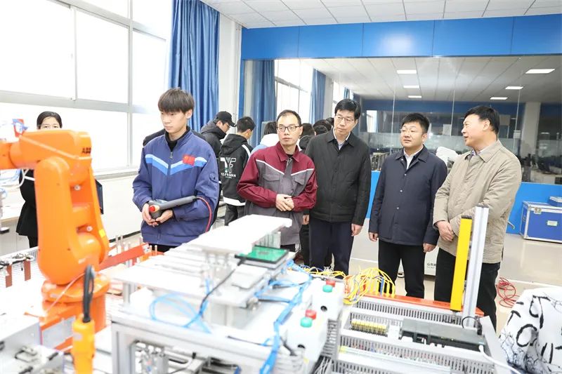 王鵬一行實(shí)地查看了學(xué)院高端智能制造實(shí)訓(xùn)基地、京東電商校園實(shí)訓(xùn)中心、汽車實(shí)訓(xùn)中心、現(xiàn)代服務(wù)系、學(xué)生宿舍等地,聽(tīng)取了學(xué)院發(fā)展情況介紹,仔細(xì)詢問(wèn)了學(xué)院電子商務(wù)實(shí)訓(xùn)基地直播間建設(shè)與發(fā)展情況和專業(yè)設(shè)置、產(chǎn)教融合、校企合作、學(xué)生管理等情況,對(duì)學(xué)院近年快速發(fā)展的成就給予肯定,對(duì)學(xué)院緊貼市場(chǎng)、依托產(chǎn)業(yè)辦學(xué)、服務(wù)區(qū)域經(jīng)濟(jì)發(fā)展等方面所取得的成績(jī)予以贊揚(yáng)。