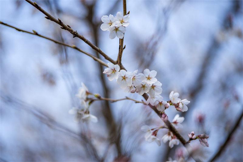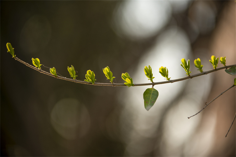 陽光透過樹葉的縫隙 灑在校園的每一個角落 玉蘭、春梅、櫻花 你不讓我、我不讓你 競相綻放 這些美麗的精靈 邂逅藏在校園里的春色