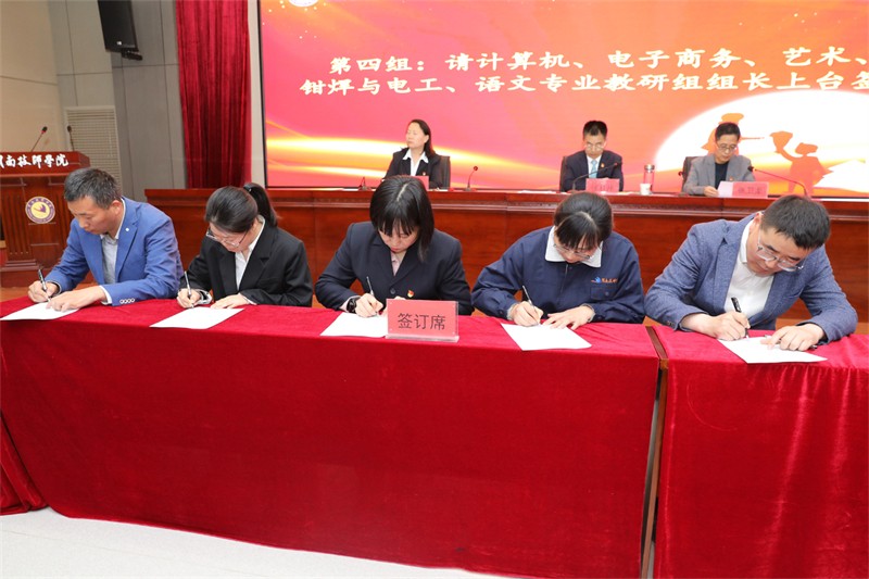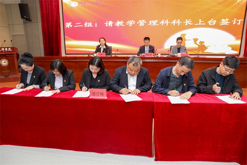 為大力弘揚教育家精神,做新時代的“大先生”,全面加強師德師風建設,健全師德建設長效機制,引導廣大教師以德立身、以德立學、以德施教、以德育德,引導全體教師加強自我修養(yǎng)、潛心教書育人,樹立良好師德形象,努力辦好人民滿意的教育。4月10日下午,學院組織舉辦全院教師“師德師風”專項教育暨承諾書簽名儀式,黨委副書記、院長張君升,黨委委員、副院長張衛(wèi)龍、石曉蘭,各教學部門負責人、教學科長、教研組組長以及教學部門教師代表參加了本次活動。活動由副院長張衛(wèi)龍主持。