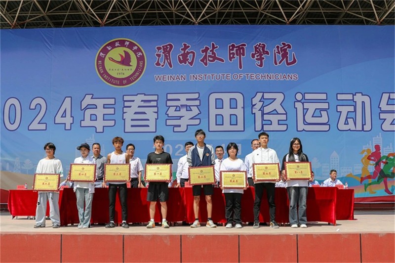 在優(yōu)美的歌曲聲中,各隊運動員依次入場,總裁判長宣布本屆運動會的比賽成績,學(xué)院領(lǐng)導(dǎo)為獲獎個人和集體舉行了莊重的頒獎儀式。張君升致閉幕詞,向在本次運動會中取得優(yōu)異成績的代表隊和運動員們表示祝賀,向辛勤付出的全體裁判員、志愿者和工作人員表示感謝,并表示本次運動會準(zhǔn)備充分,組織周密、秩序井然,展現(xiàn)了全校師生團結(jié)奮進、勇往直前、追趕超越的精神風(fēng)貌,是一次團結(jié)的大會、和諧的大會、勝利的大會。他希望同學(xué)們將本屆運動會上所展現(xiàn)的永不服輸、一往無前的精神帶到日常的學(xué)習(xí)生活中去,勤學(xué)苦練,勵志成才,努力做德智體美勞全面發(fā)展的新時代技能人才,希望全院廣大教職工把本屆運動會所激發(fā)出的團結(jié)協(xié)作、創(chuàng)先爭優(yōu)的精神,傾注到學(xué)院內(nèi)涵建設(shè)中,轉(zhuǎn)化為推動學(xué)院高質(zhì)量發(fā)展的強大動力。上午11時,張君升宣布渭南技師學(xué)院、渭南工業(yè)學(xué)校2024年春季田徑運動會圓滿閉幕。