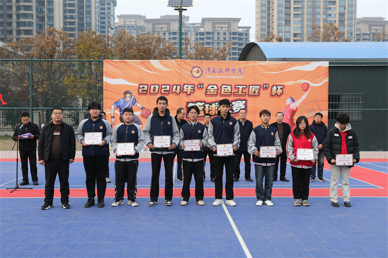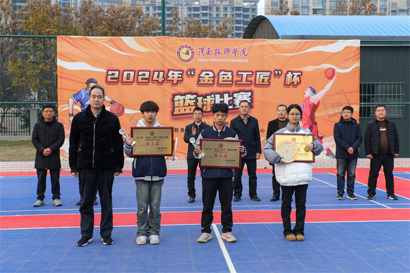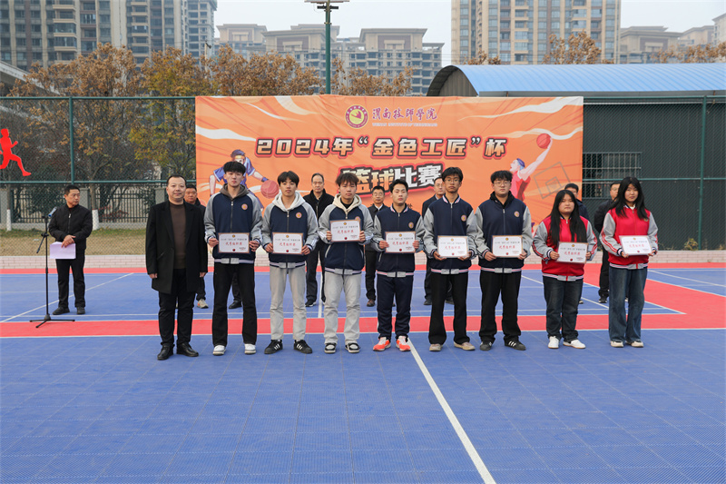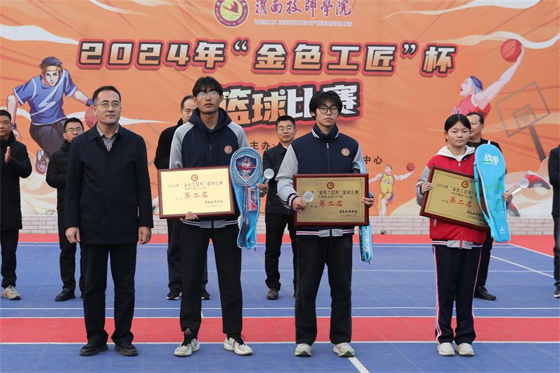12月11日下午,渭南技師學(xué)院2024年“金色工匠杯”籃球賽閉幕式在學(xué)院籃球場(chǎng)舉行。學(xué)院黨委副書記、院長(zhǎng)張君升,黨委副書記蔡小倫,相關(guān)部門負(fù)責(zé)人出席閉幕式。閉幕式由學(xué)生處處長(zhǎng)李峰主持。