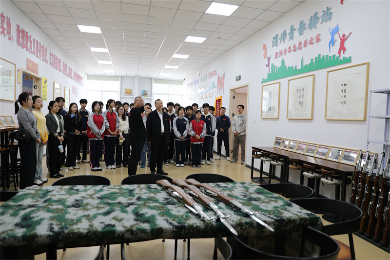 在莊嚴肅穆的展館內(nèi),渭南師范學院團委書記趙琦為大家講述了這面珍貴國旗的來歷與深遠意義!斑@面編號為2023-0129的五星紅旗,由北京市人民政府天安門地區(qū)管理委員會贈予渭南師范學院,它曾于2023年5月9日在天安門廣場上空冉冉升起,恰逢渭南師范學院建校63周年校慶日,其獨特的編號與特定的日期,賦予了這面國旗無可替代的唯一性與珍貴的紀念價值!壁w琦的生動講解,使大家深刻感受到這面國旗所承載的無上榮光與歷史分量。